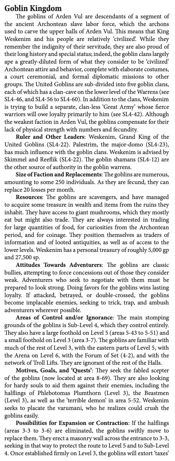 I’m being a little unfair to Incandescent Grottoes here - at least it has something! Most modules (even the good ones) don’t have a faction writeup at all.