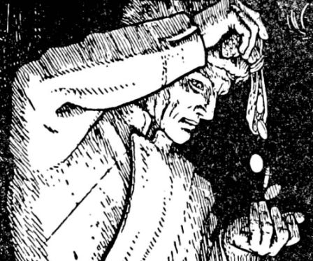 A potion of treasure finding empowers the drinker with a location sense, so that he or she can point to the direction of the nearest mass of treasure. The treasure must be within 24” or less, and its mass must equal metal of at least 10,000 copper pieces or 100 gems or any combination thereof. Note that only valuable metals (copper, silver, electrum, gold, platinum, etc.) and gems (and jewelry, of course) are located; worthless metals or magic without precious metals/gems are not found. The consumer of the potion can “feel” the direction in which the treasure lies, but not its distance. Intervening substances other than special magical wards or lead-lined walls will not withstand the powers which the liquor bestows upon the individual. The effects of the potion last for from 5-20 rounds. (Clever players will attempt triangulation.)