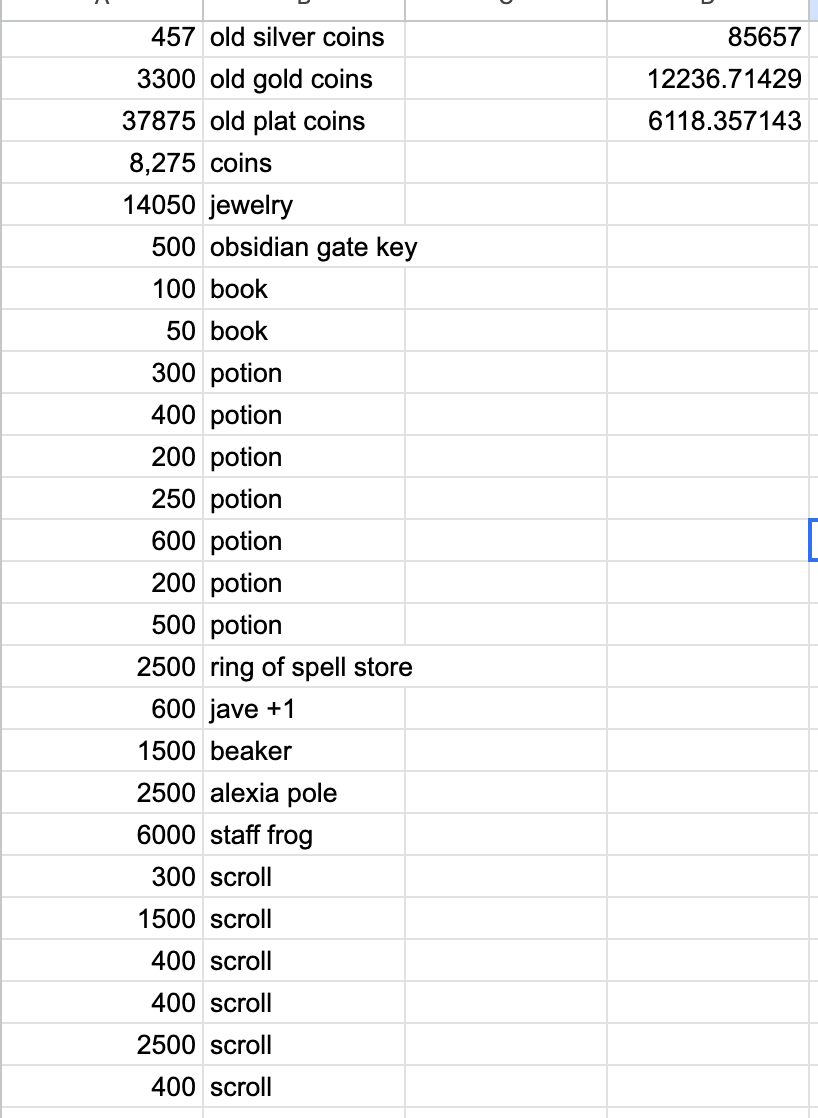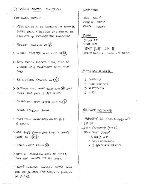 Our note-taking needs to be able to handle the players looting multiple hoards, bringing them back to town, forgetting about them, and then asking about them later. If you don’t prepare for this eventuality ahead of time, you’ll run into (like I have) something that looks like